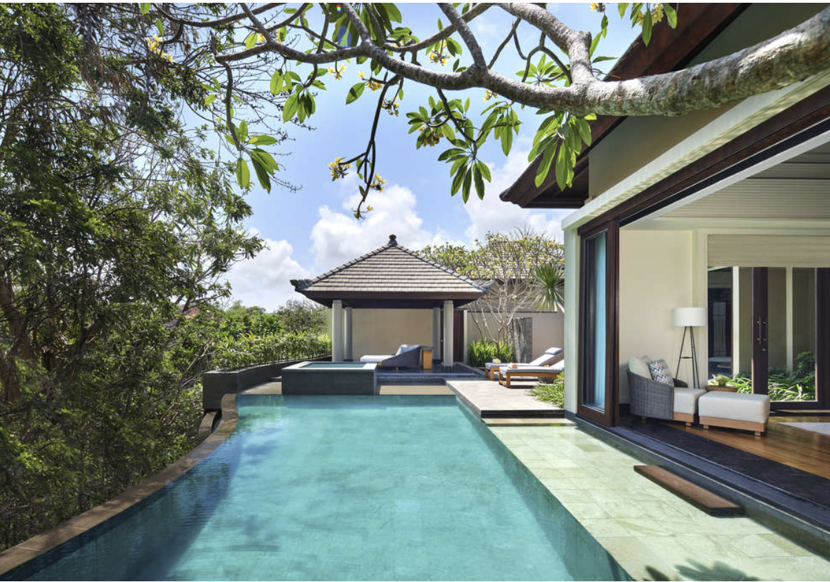 Perched on the island's southernmost tip at Ungasan, Umana Bali is wrapped in ocean views and features 72 luxury villas. The resort is laid out in cascading terraces atop limestone cliffs, reminiscent of uma, or ancient rice paddy fields, after which it is named.
