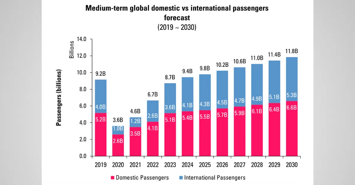 Looking ahead, global passenger numbers are expected to exceed 10 billion in 2026 and reach 11.8 billion by 2030, a 2 billion increase over the 2025 figure.