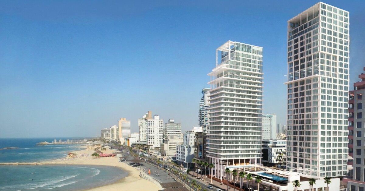 Housed in a 34-storey skyscraper designed by Feigin Architects, the 250-room property includes 56 suites with views of the Mediterranean Sea framed by floor-to-ceiling windows.