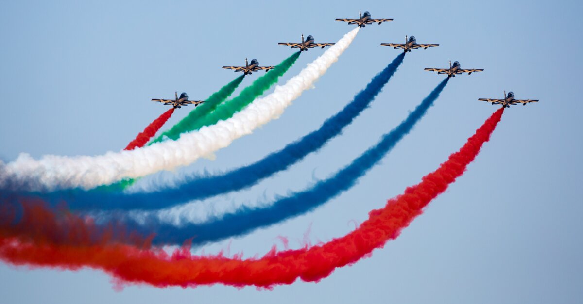 The Airshow will feature aerobatic displays from the UAE Air Force's Fursan, the Russian Knights, the Saudi Hawks, Surya Kiran from India and the Sarang Team of the Indian Air Force.