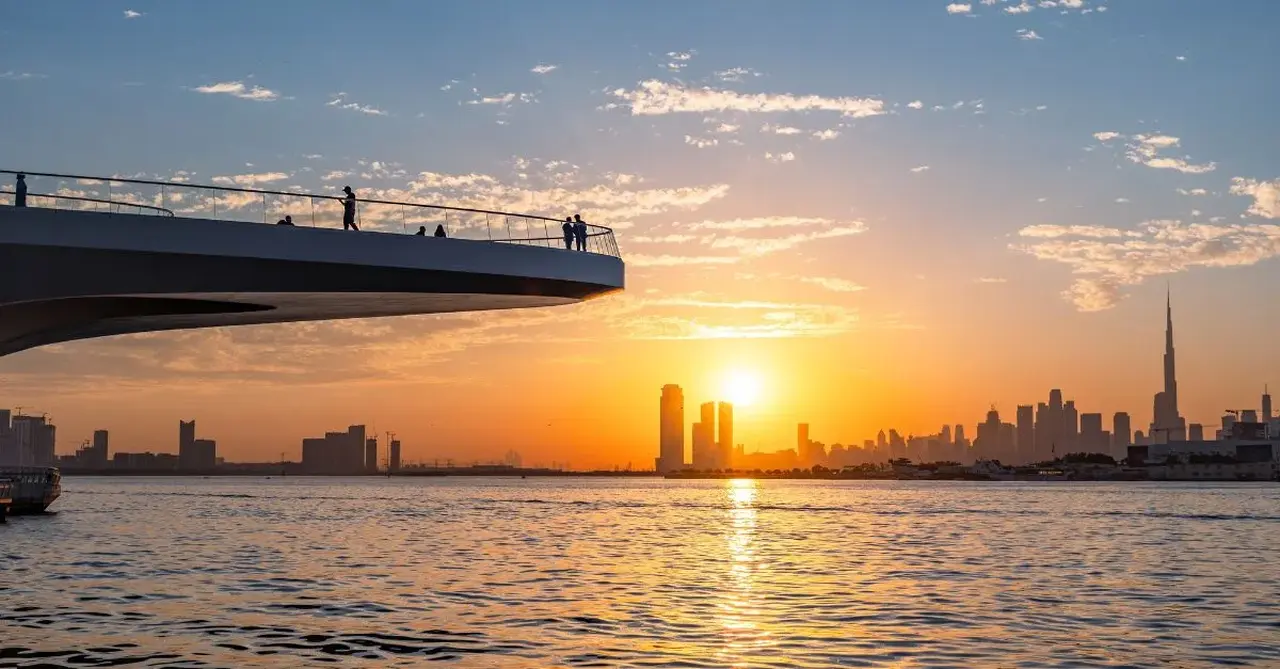 Among the best spots in Dubai to experience a sunset, the observation decks at the Burj Khalifa offer panoramic views of both the city and the surrounding desert; while the view from the Dubai Creek Harbour viewing point is the sun setting behind Burj Khalifa and Downtown skyline, which makes for an incredible silhouette.