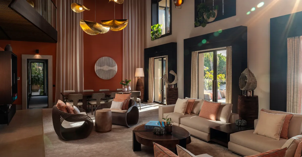 At the heart of the residence, which accommodates up to 10 people, lies an open-plan living area that extends to a private terrace, featuring an infinity pool, hot-tub cabana and open-air dining area with sculpted wood furniture and artisan-crafted finishes.
