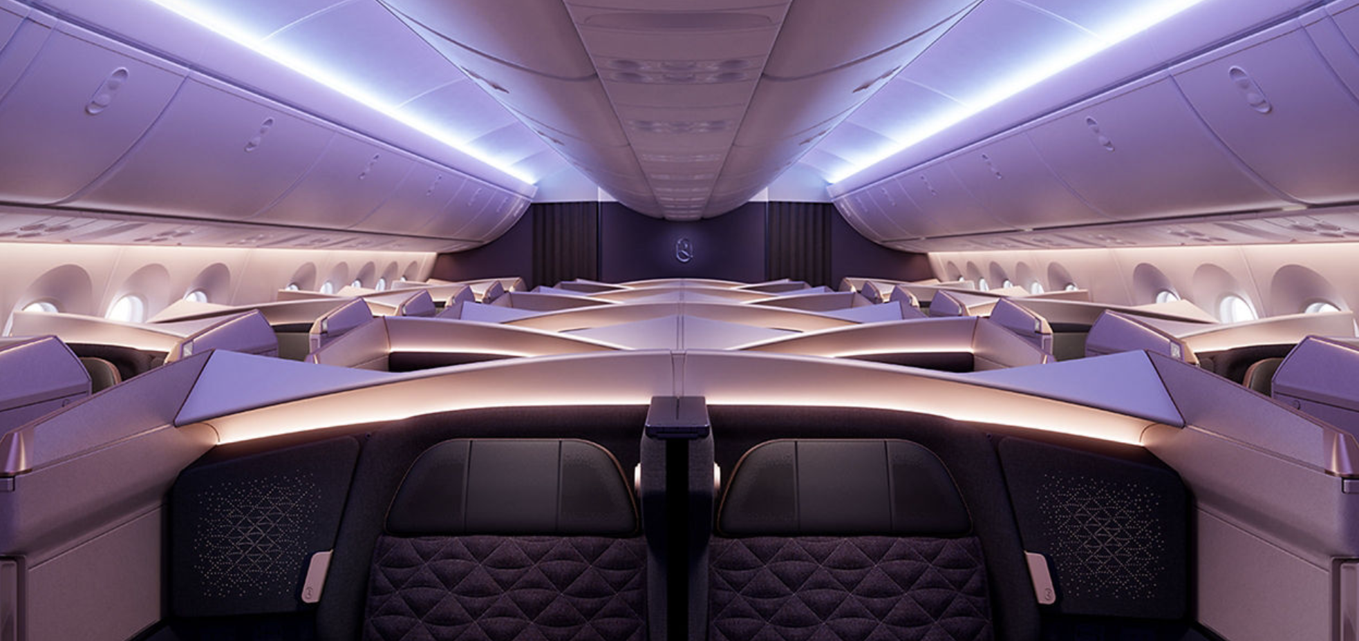 Business Elite has a double bed in the centre front seats while all seats in both Business Elite and Business come with A/C power and multiple USB charging points.