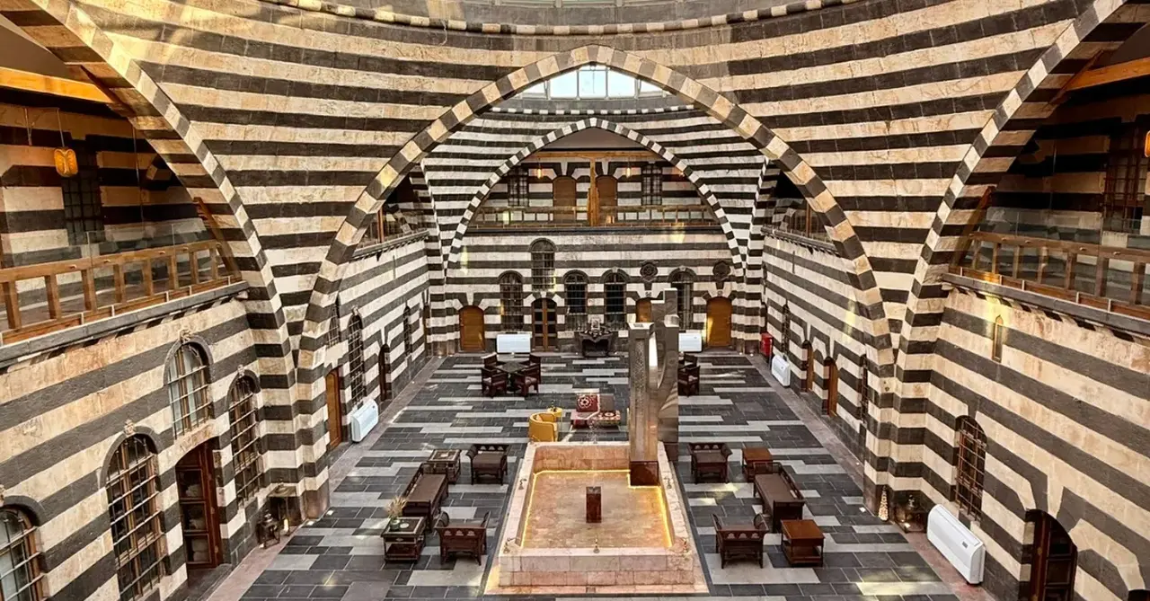 Blending heritage and contemporary design, the 25-room hotel features authentic Ottoman architecture, including original stonework featuring Arabian ablaq techniques of two-tone structures, alongside Damascene arches.