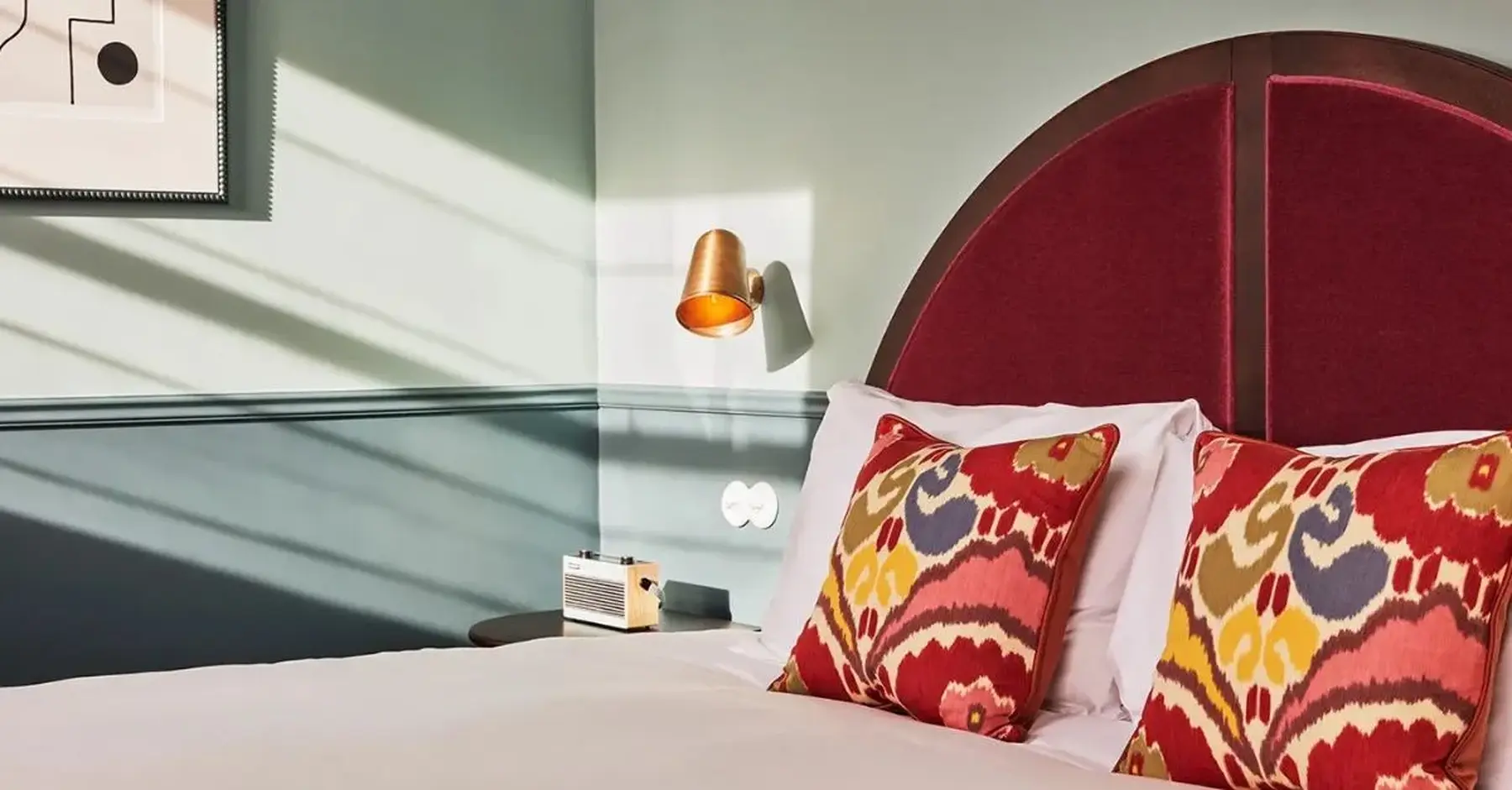 Occupying 11 Georgian-inspired terraced townhouses across both sides of historic Grosvenor Street, The Hoxton combines original preserved features such as ornate cornicing, high ceilings and sash windows with mid-century furnishings, bold geometric textiles and luxury highlights, including a vintage Murano glass chandelier in the lobby.